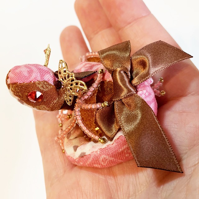 チョコレートのちびっこ宝石竜ブローチ【ストロベリーのリボン】