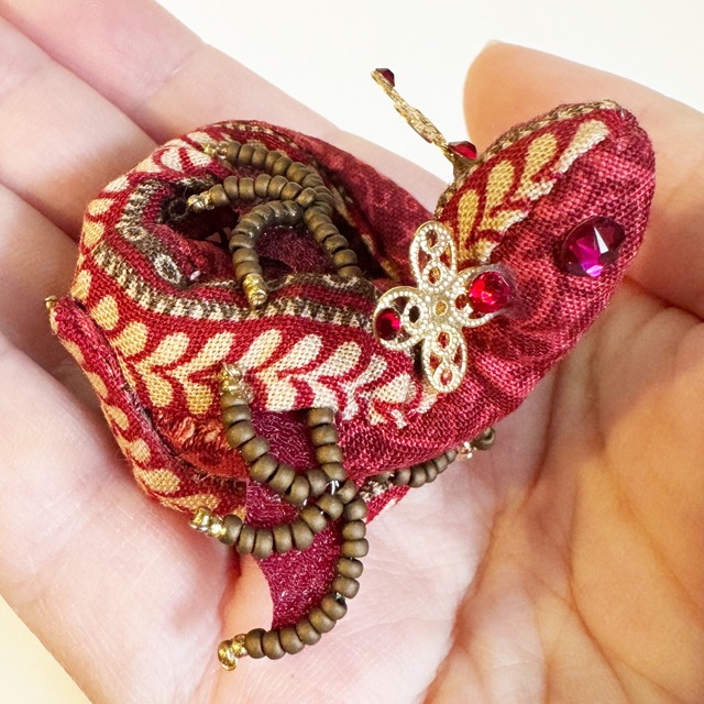 ちびっこ宝石竜ブローチ【古金のルビー】