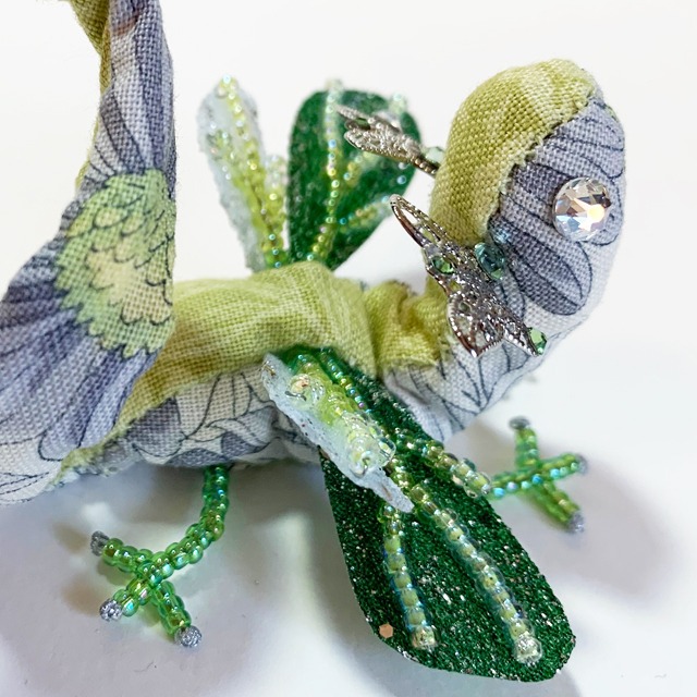 「オズの魔法使い」に出てくる「エメラルドの都」をイメージした宝石竜です。 「それは、高くて厚い、あざやかな緑色の城壁でした。 大きな門には、きらきらかがやくエメラルドが、 一面にちりばめられて いたのです。」 さあ、緑に輝く欺瞞の街へようこそ。 翼にクリスタルガラスを散りばめております。 宝石の瞳を持つ竜【宝石竜】。 年経た【宝石】が【竜】になったのか 【竜】のみが持つ煌びやかな瞳を 【宝石】と呼ぶようになったのかは 定かではありません。 残念ながら彼らは近すぎず遠すぎない過去に死に絶え 今は装飾品でその瞳を見られるのみです。 こちらはかつての【宝石竜】たちの 生まれたばかりの姿を再現したものです。 あなたが大切に愛で続けてくださると 再び【宝石】の瞳に命が宿るかもしれません。 「それでも、わたしたちは輝くの。」 【商品説明】 室内用オブジェです。 サイズ約10cm×10cm 高さ7〜9cm (宝石竜より翼が大きくなっております) (瞳はクリスタルガラスを使用しています) (写真と実物の色味が異なって見える可能性がございます) 取り扱いについて 骨格が針金で出来ております。 直射日光に当てず、湿気や水分に触れないようにしてください。 持ち上げるときはしっぽ部分をつかんでください。 可変性はございますが、原型のまま動かさないでください。 ※屋内に置いて楽しんでいただく前提でお作りしております。 強い力を加えると破損する恐れがあります。 足や指の角度程度でしたら、軽い力でクイっとしていただくと動きます。 足が地に着いていないような感じになってしまいましたら 足を上から軽く押して接地面に置いてみてください。 地に足が着きます。 ※ツノ部分は特に破損しやすい部分です。 あまり強くお手を触れないようにしてください。 竜たちもちょっぴり怒ります。 ※宝石竜は全て1点ものです。再販はございません。