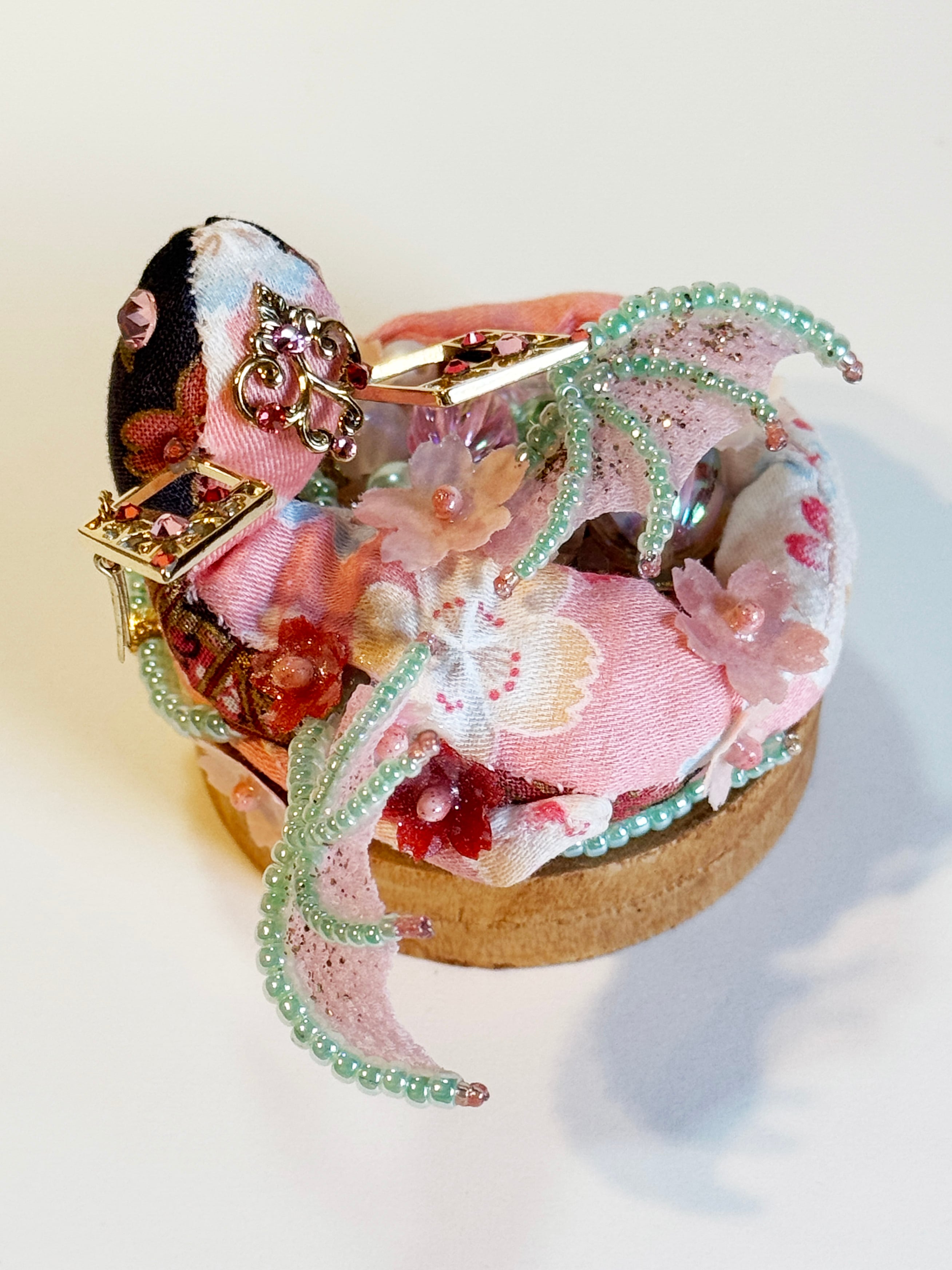 過去に作った期間限定桜宝石竜を丸めてさらに飾り付けてお色直しをしました。