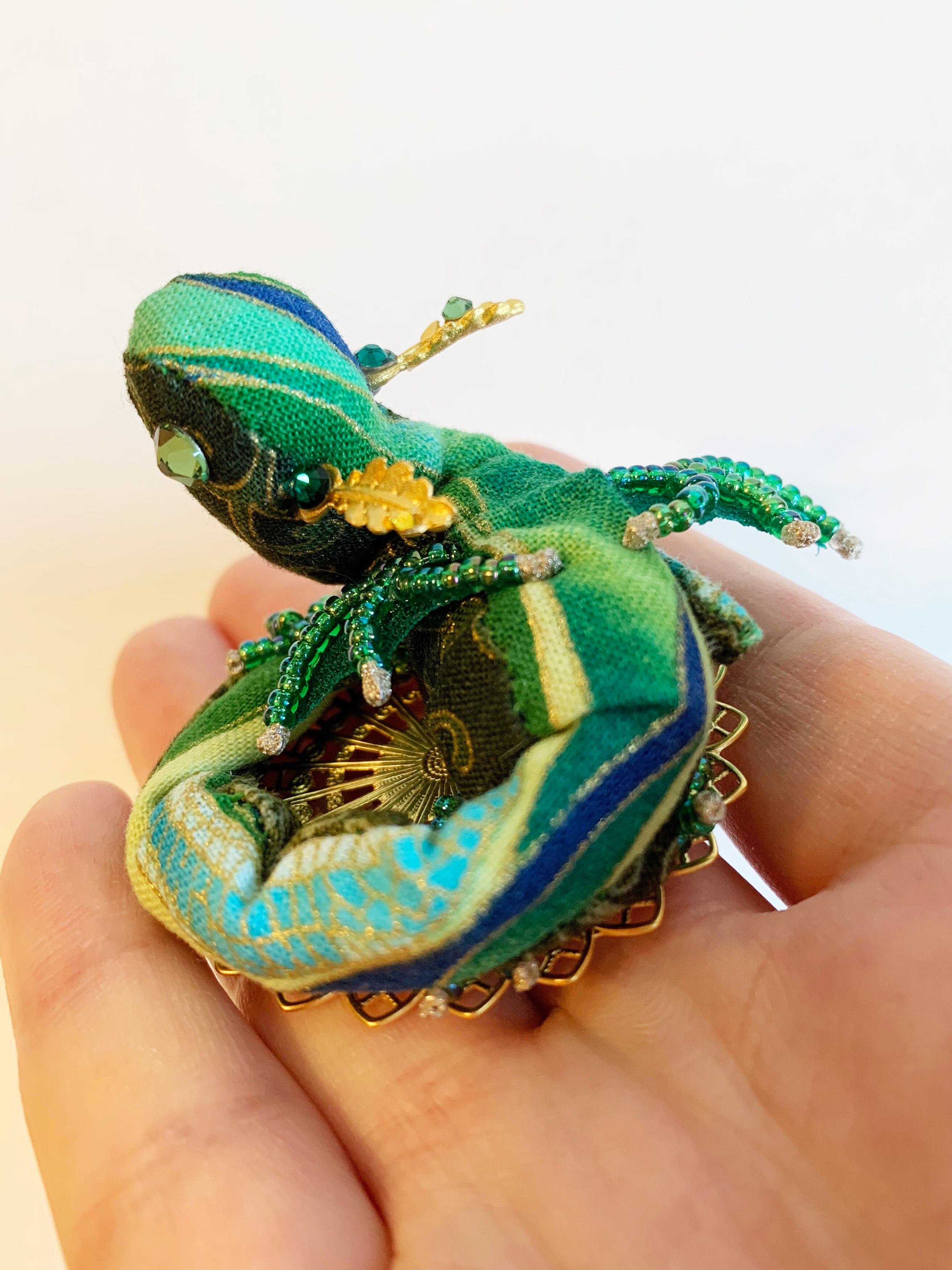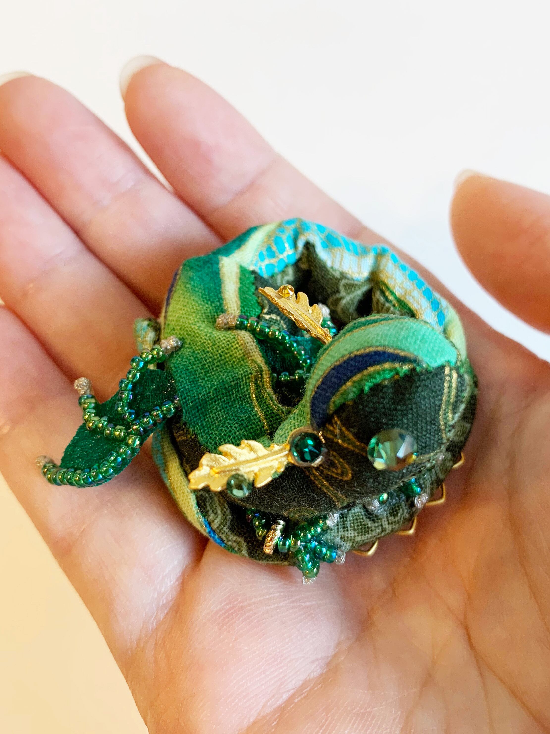 ちびっこ宝石竜のブローチ【エメラルド】