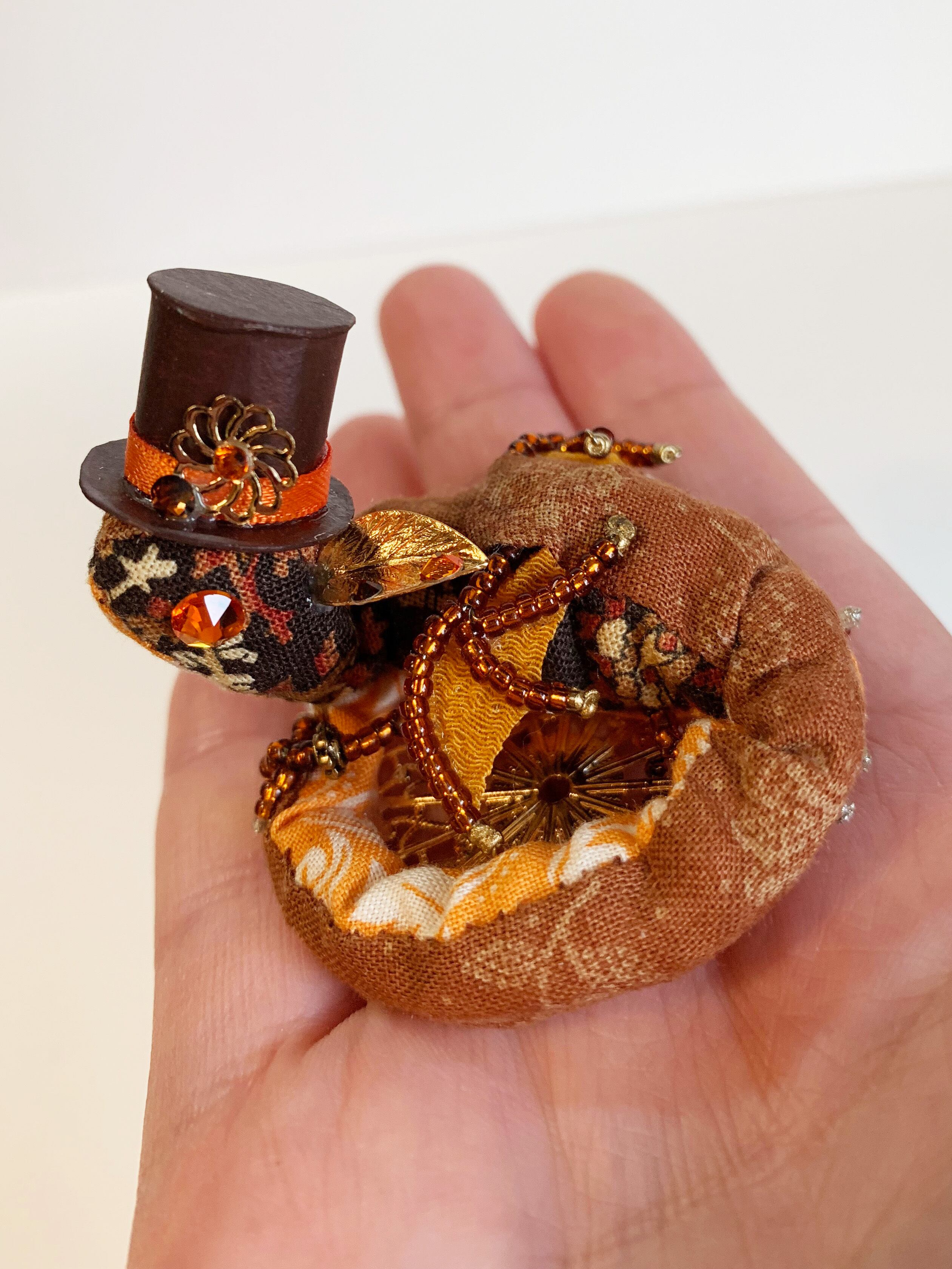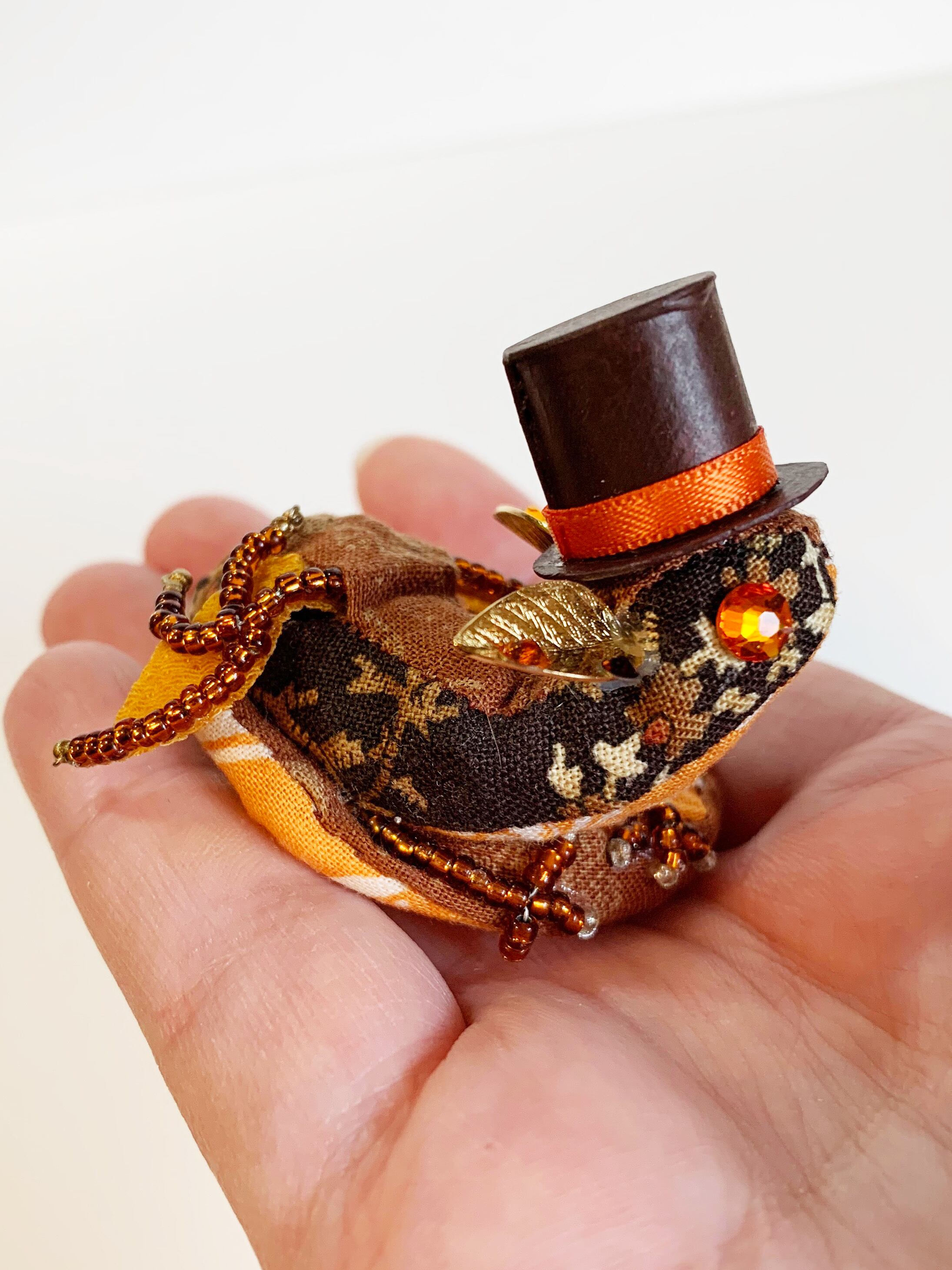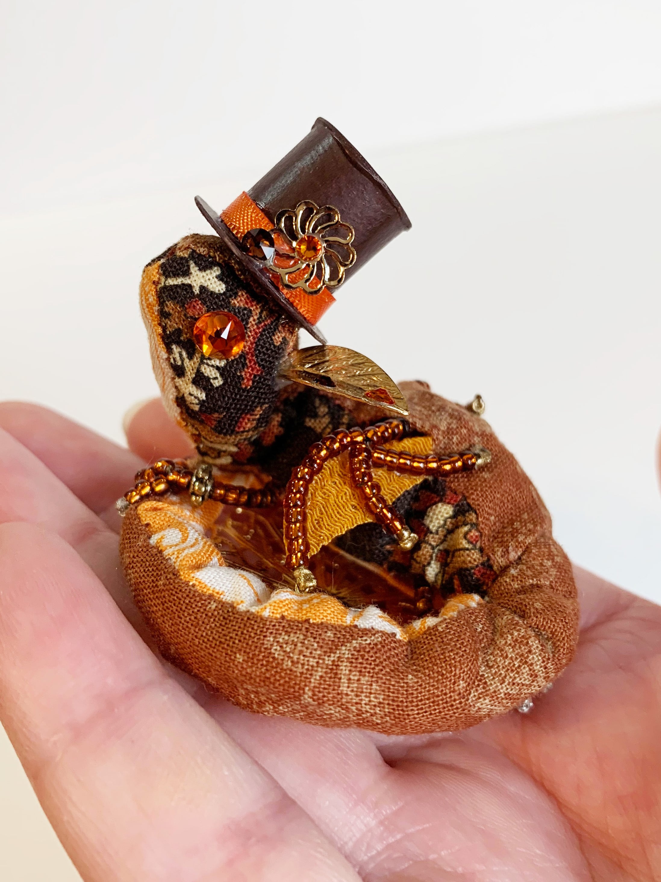 チョコレートのちびっこ宝石竜ブローチ【オレンジのハット】
