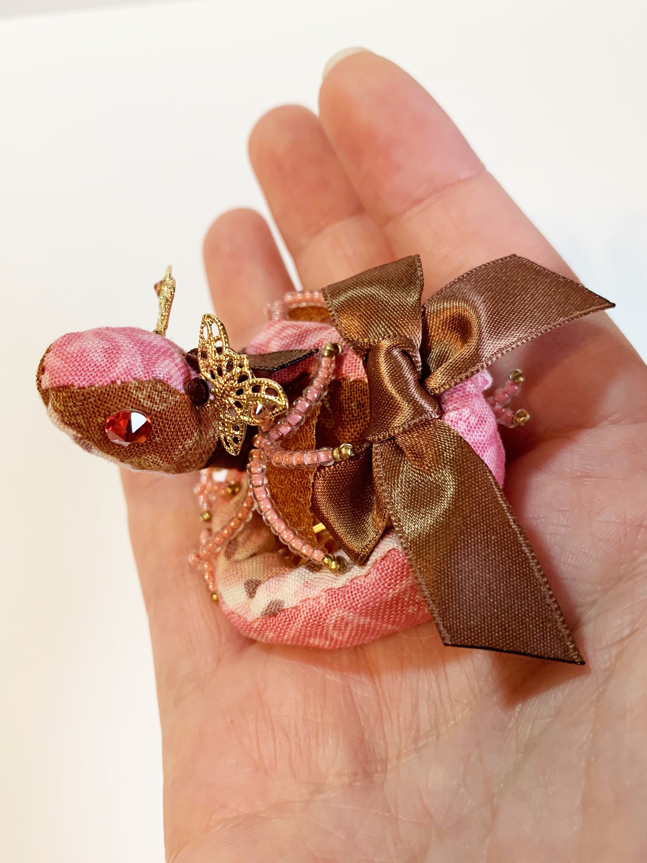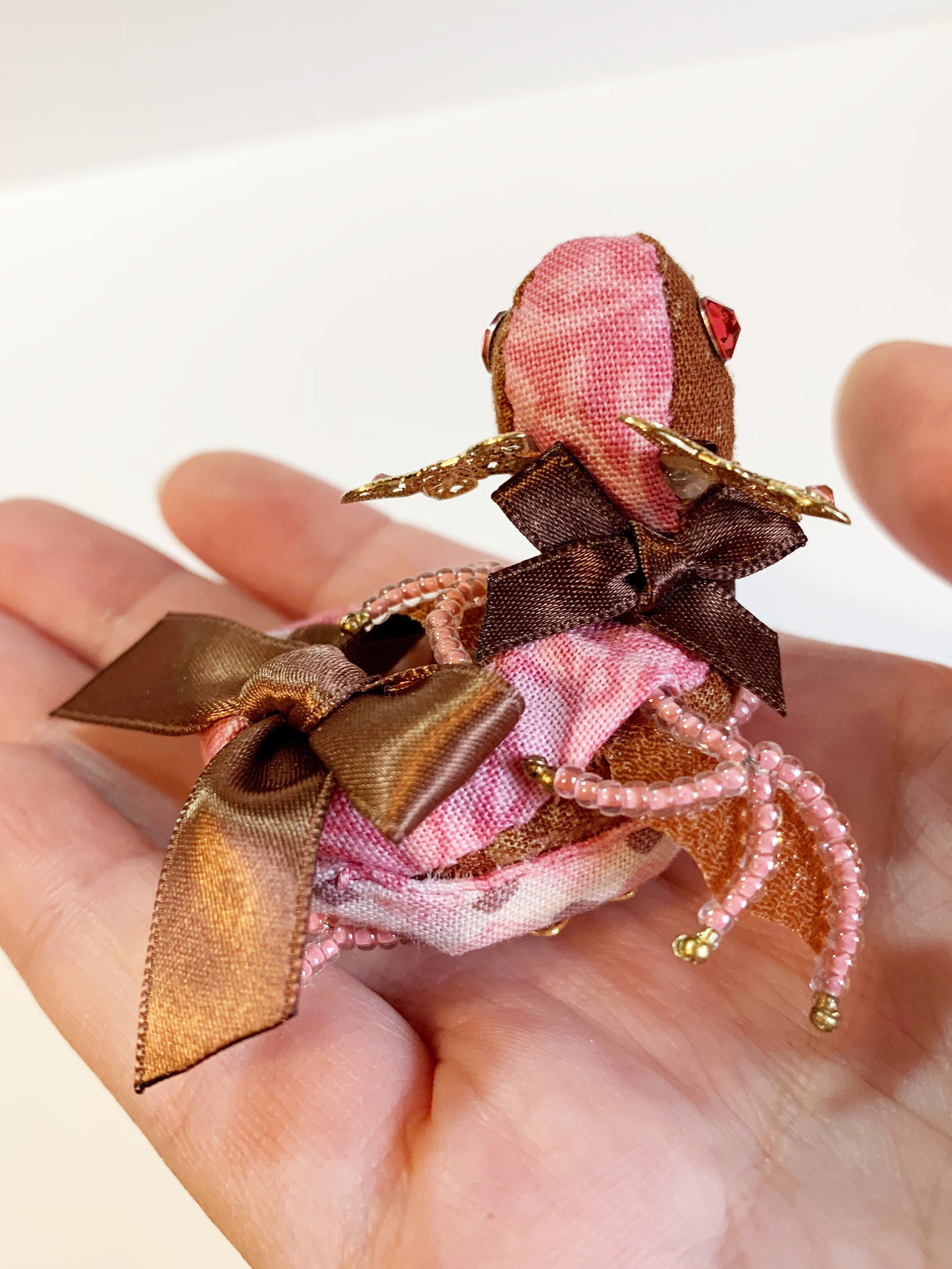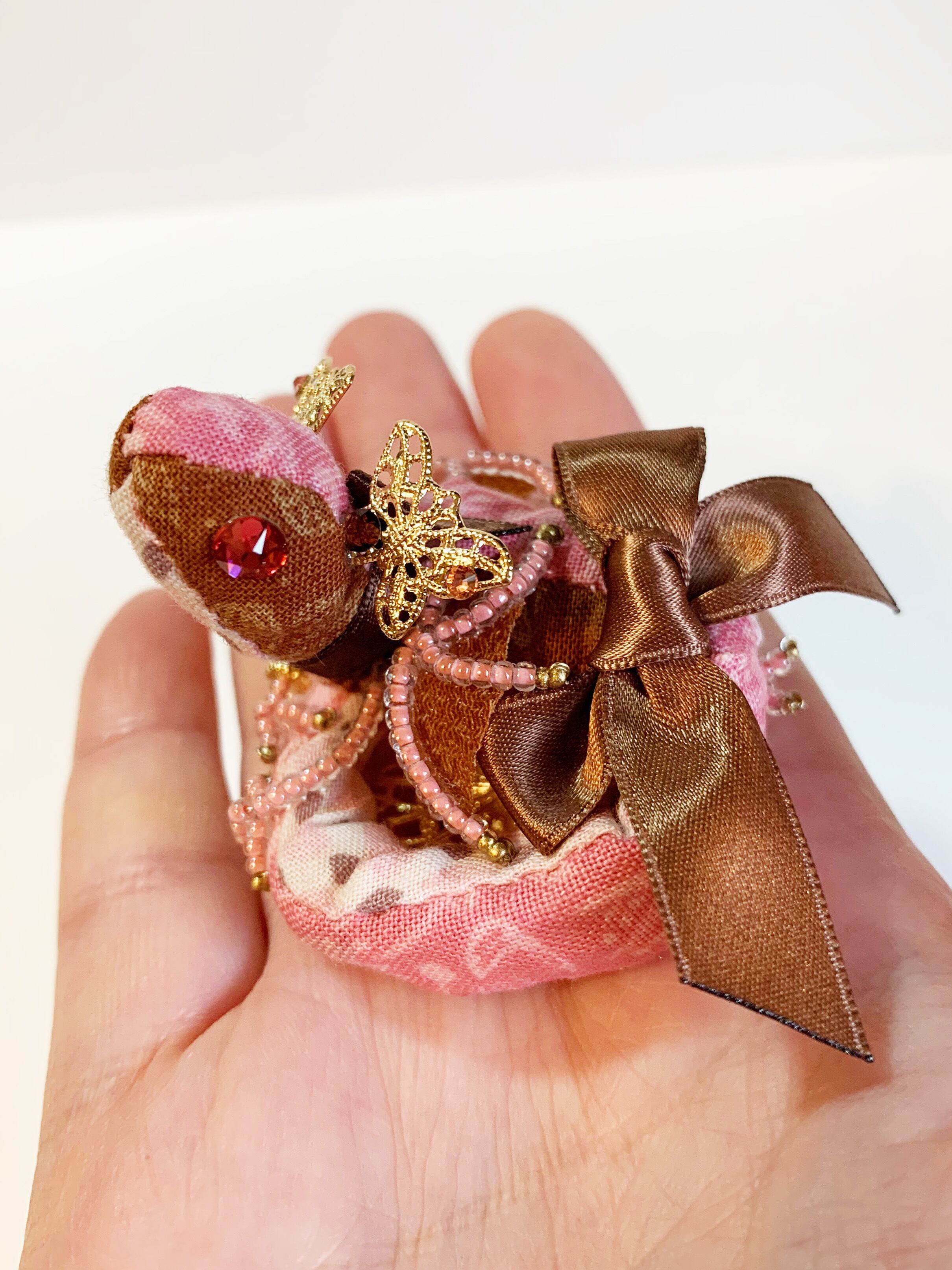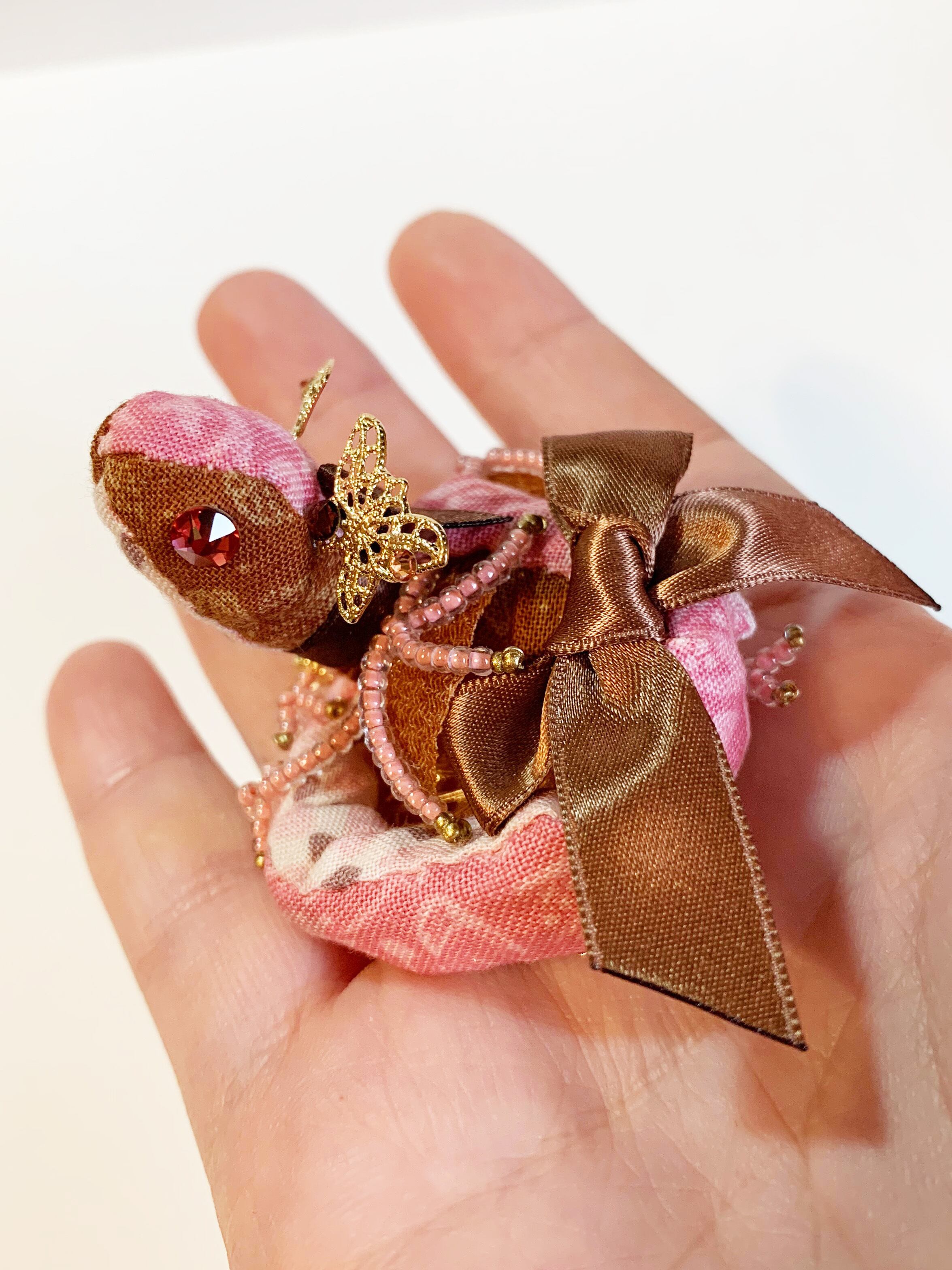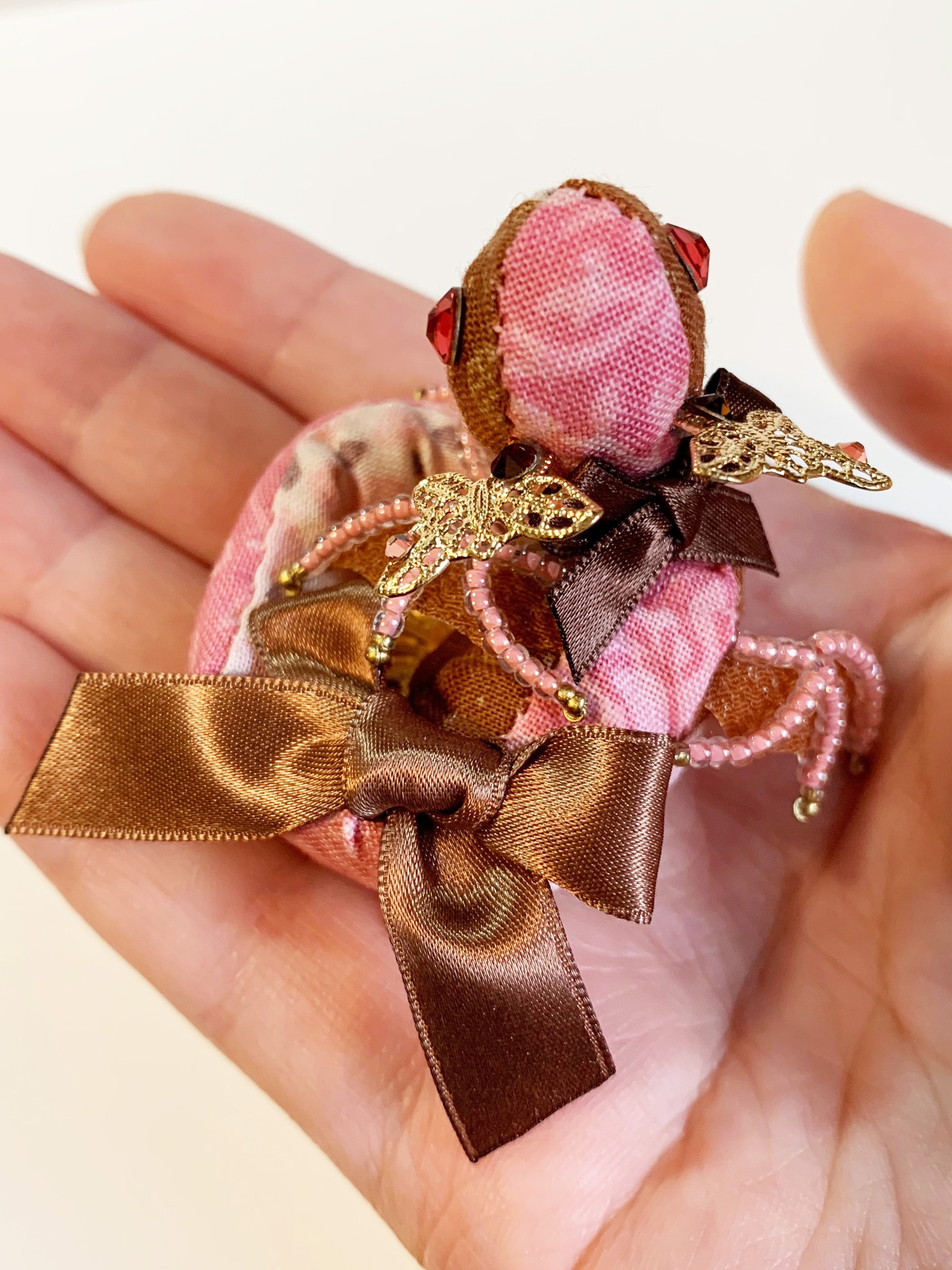 チョコレートのちびっこ宝石竜ブローチ【ストロベリーモカのリボン】