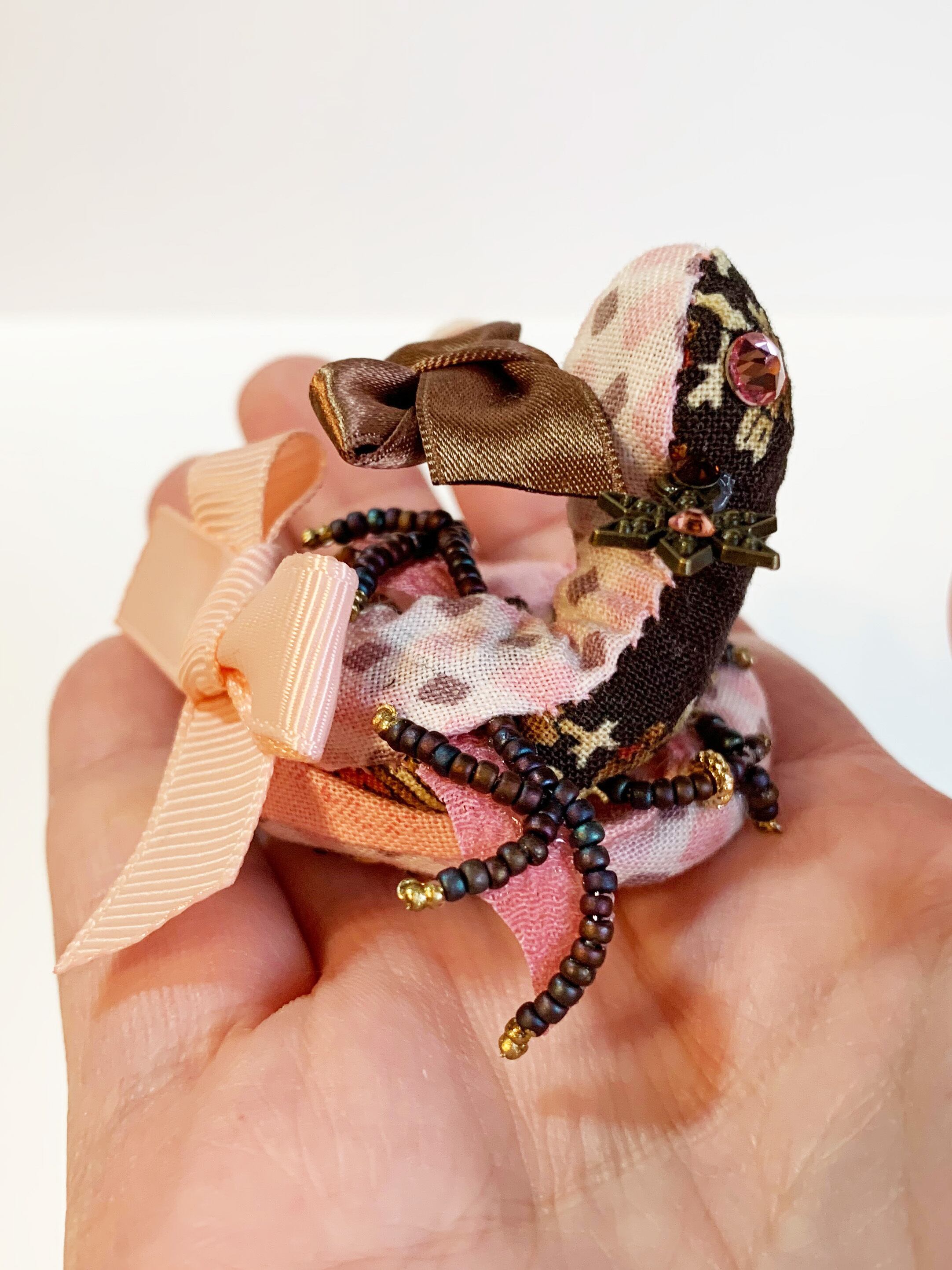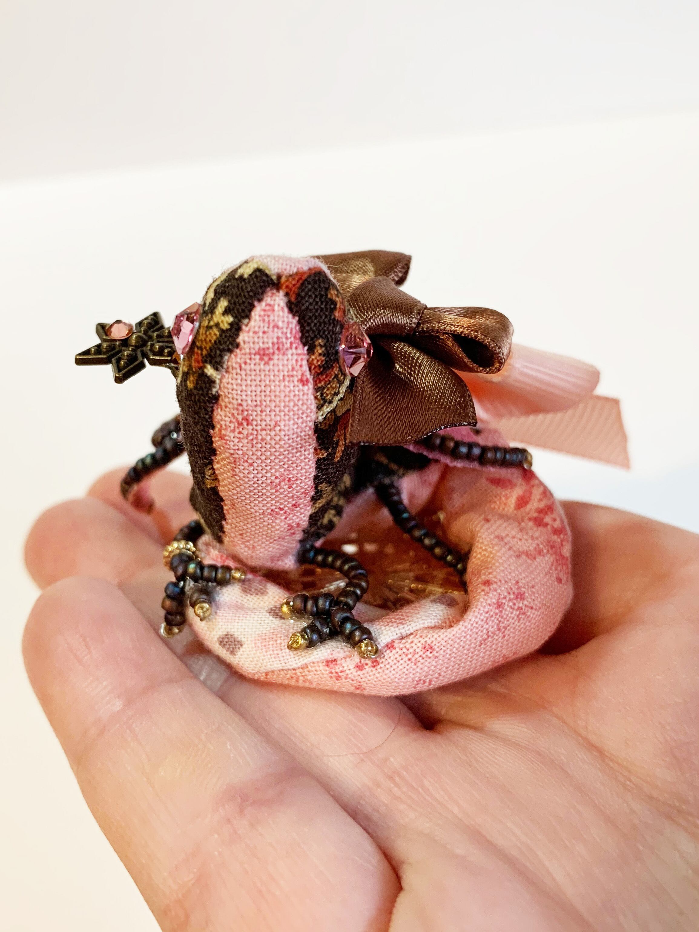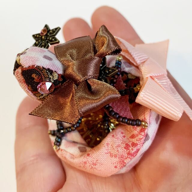 チョコレートのちびっこ宝石竜ブローチ【ダークストロベリーのリボン】