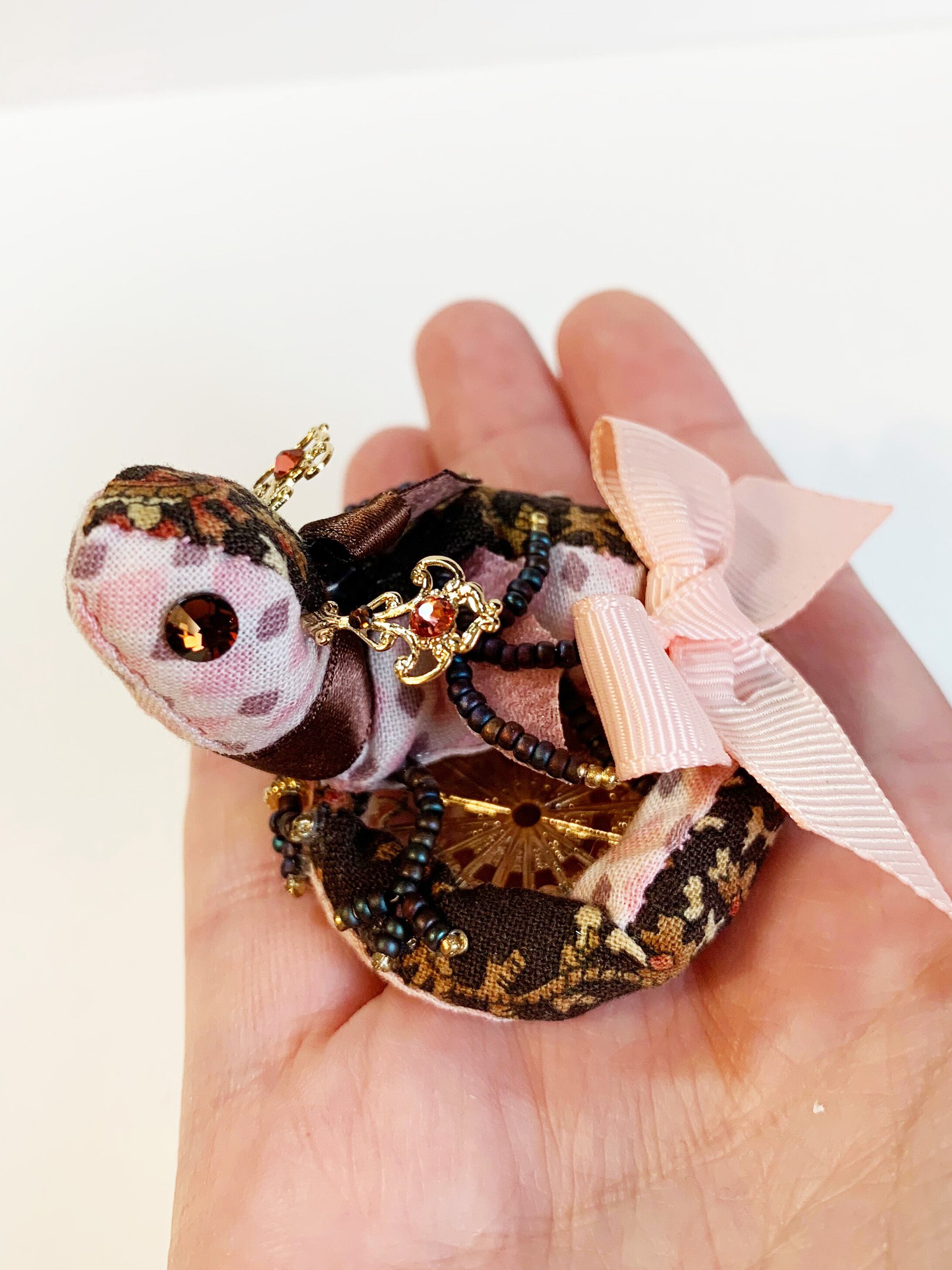 チョコレートのちびっこ宝石竜ブローチ【ストロベリーのリボン】