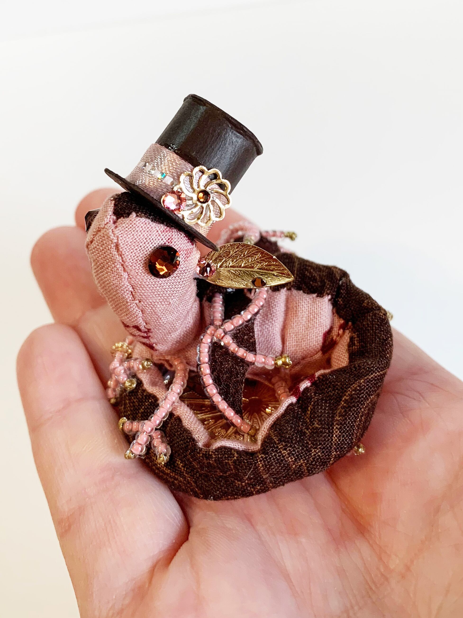 チョコレートのちびっこ宝石竜ブローチ【ストロベリーのハット】