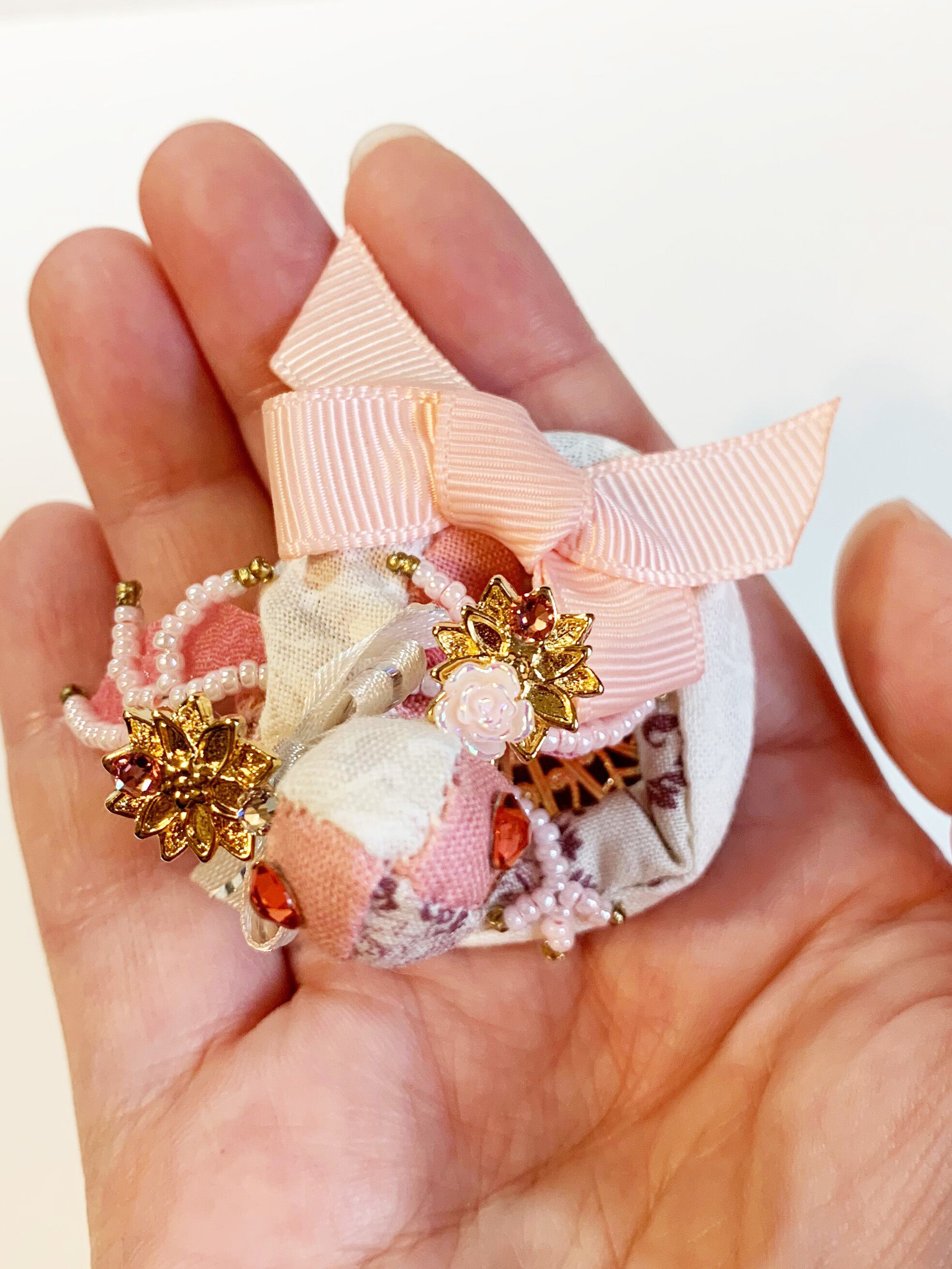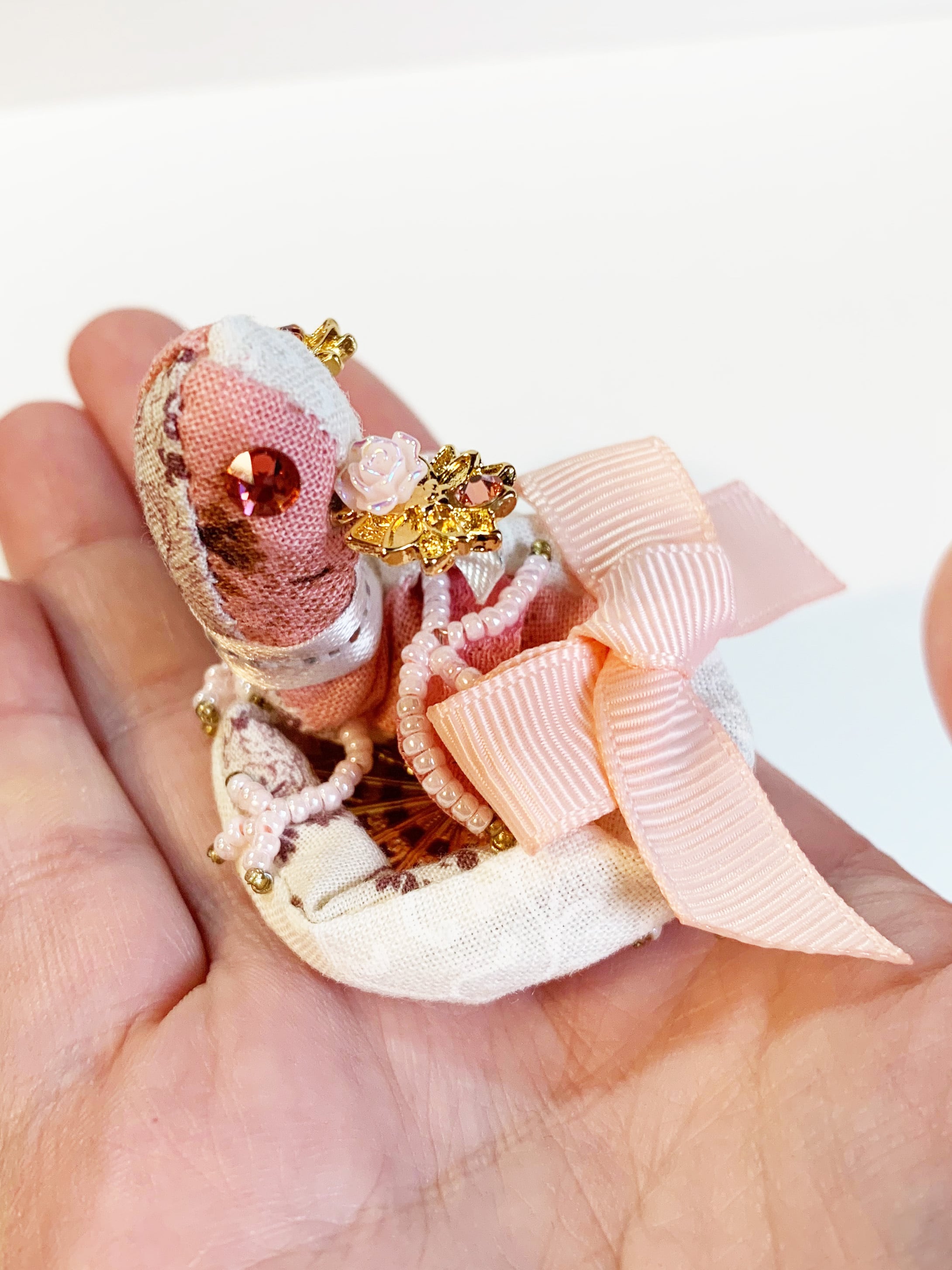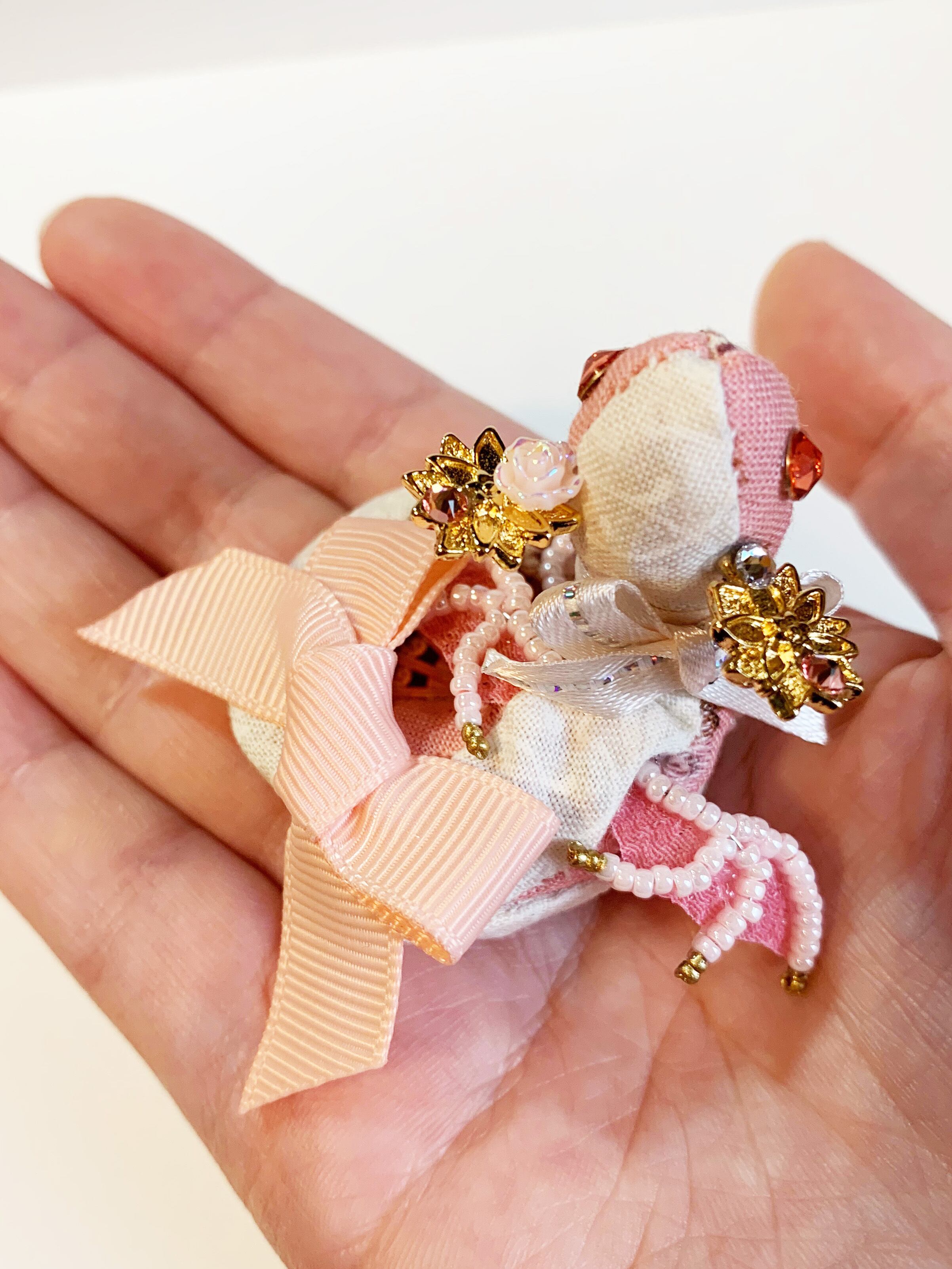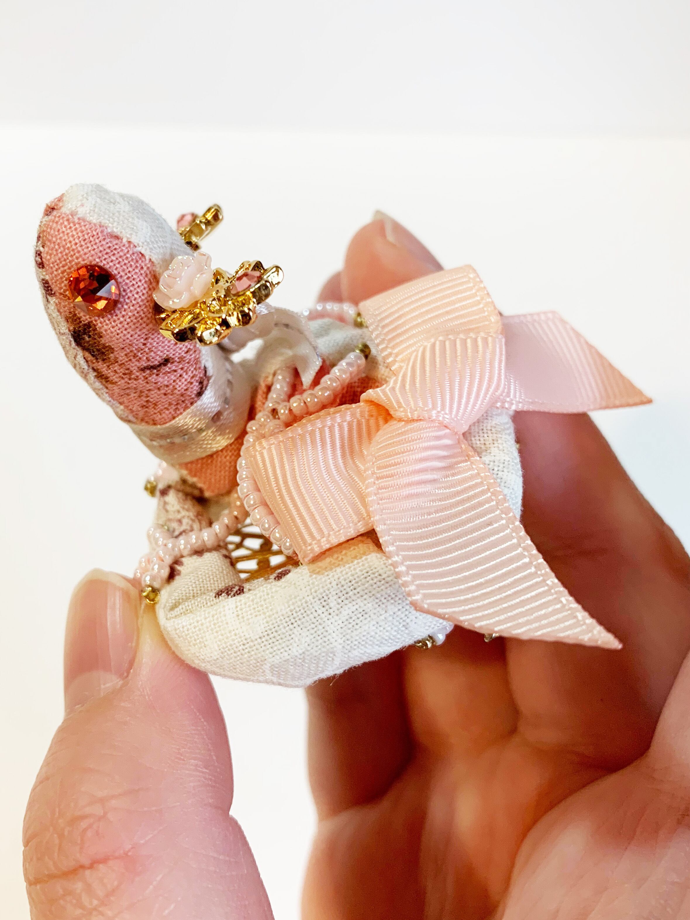 チョコレートのちびっこ宝石竜ブローチ【ホワイトストロベリーのリボン】