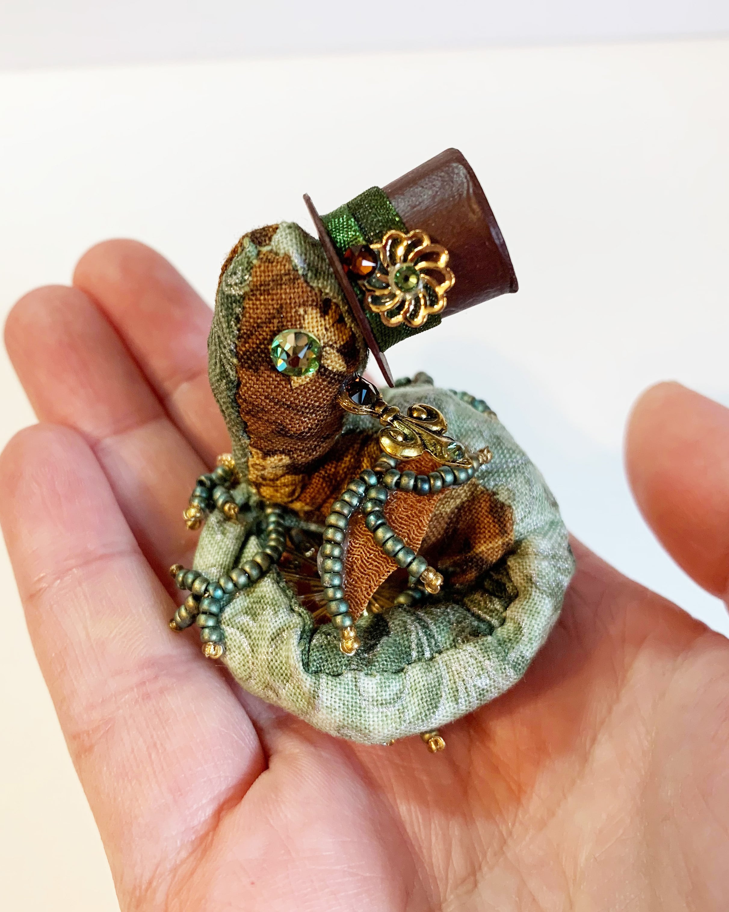 チョコレートのちびっこ宝石竜ブローチ【ミルク抹茶のハット】