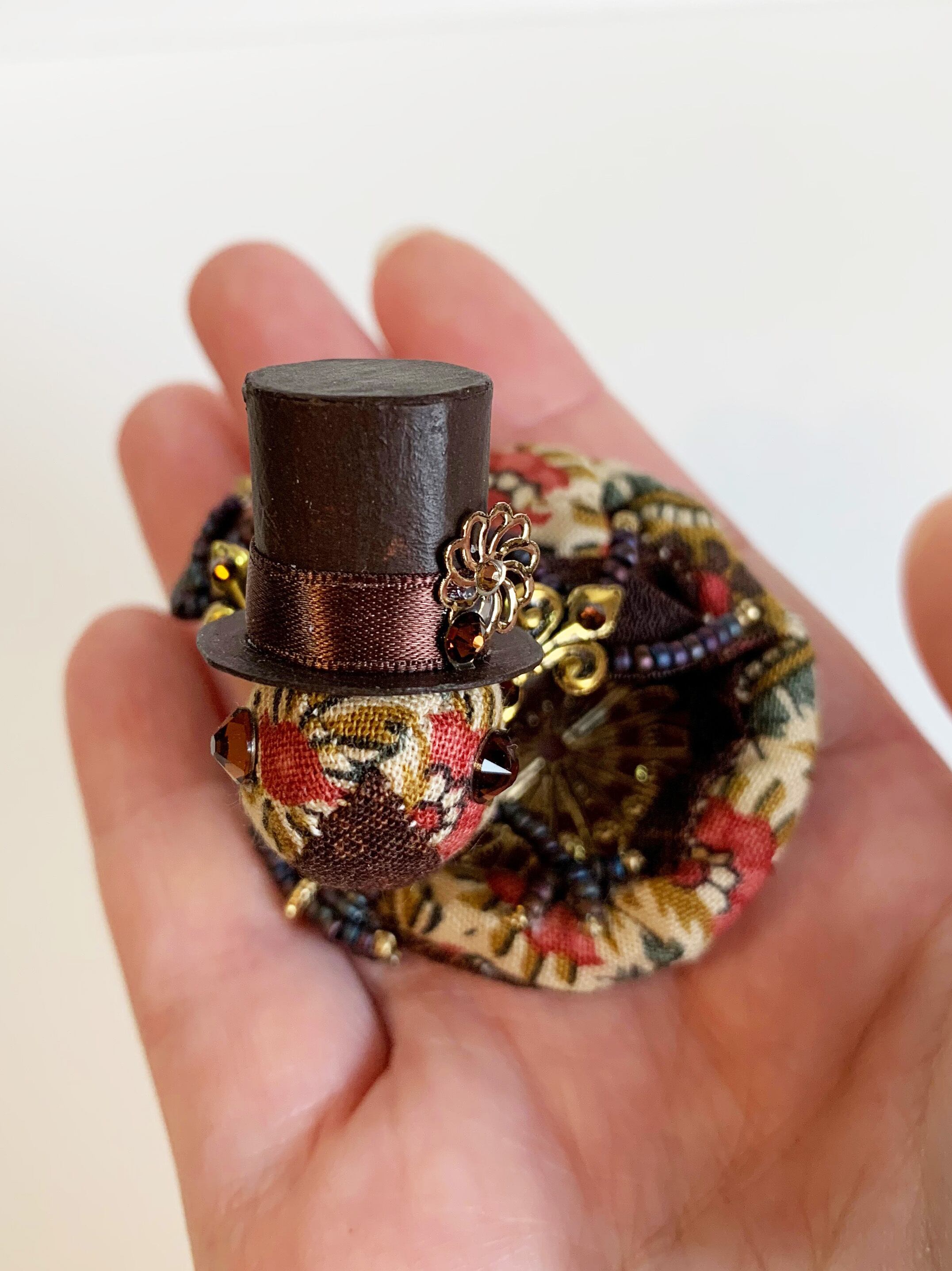 チョコレートのちびっこ宝石竜ブローチ【ビターチョコのハット】