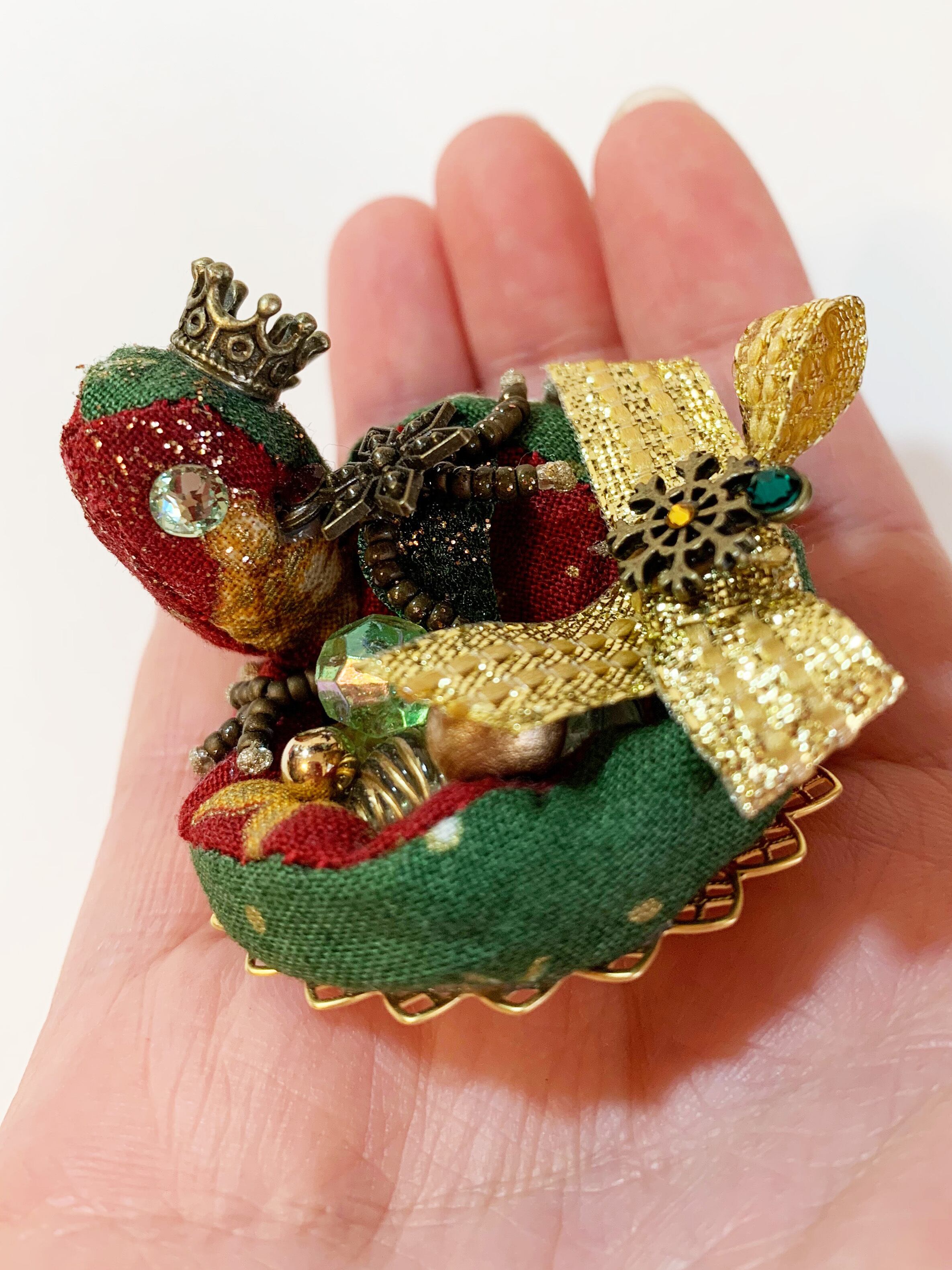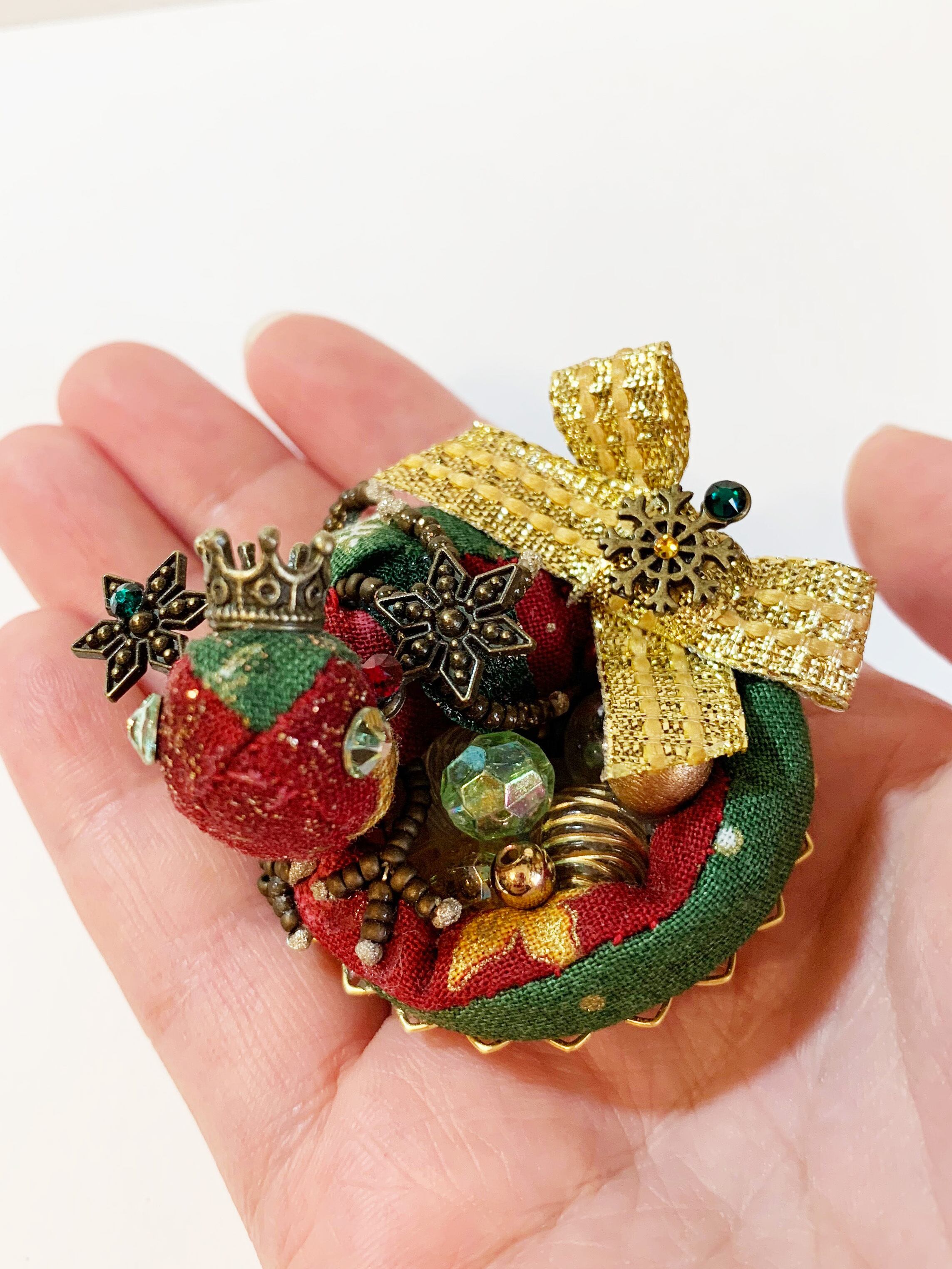 リース仕立てのクリスマスちびっこ宝石竜ブローチです
