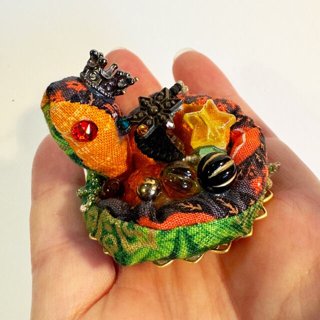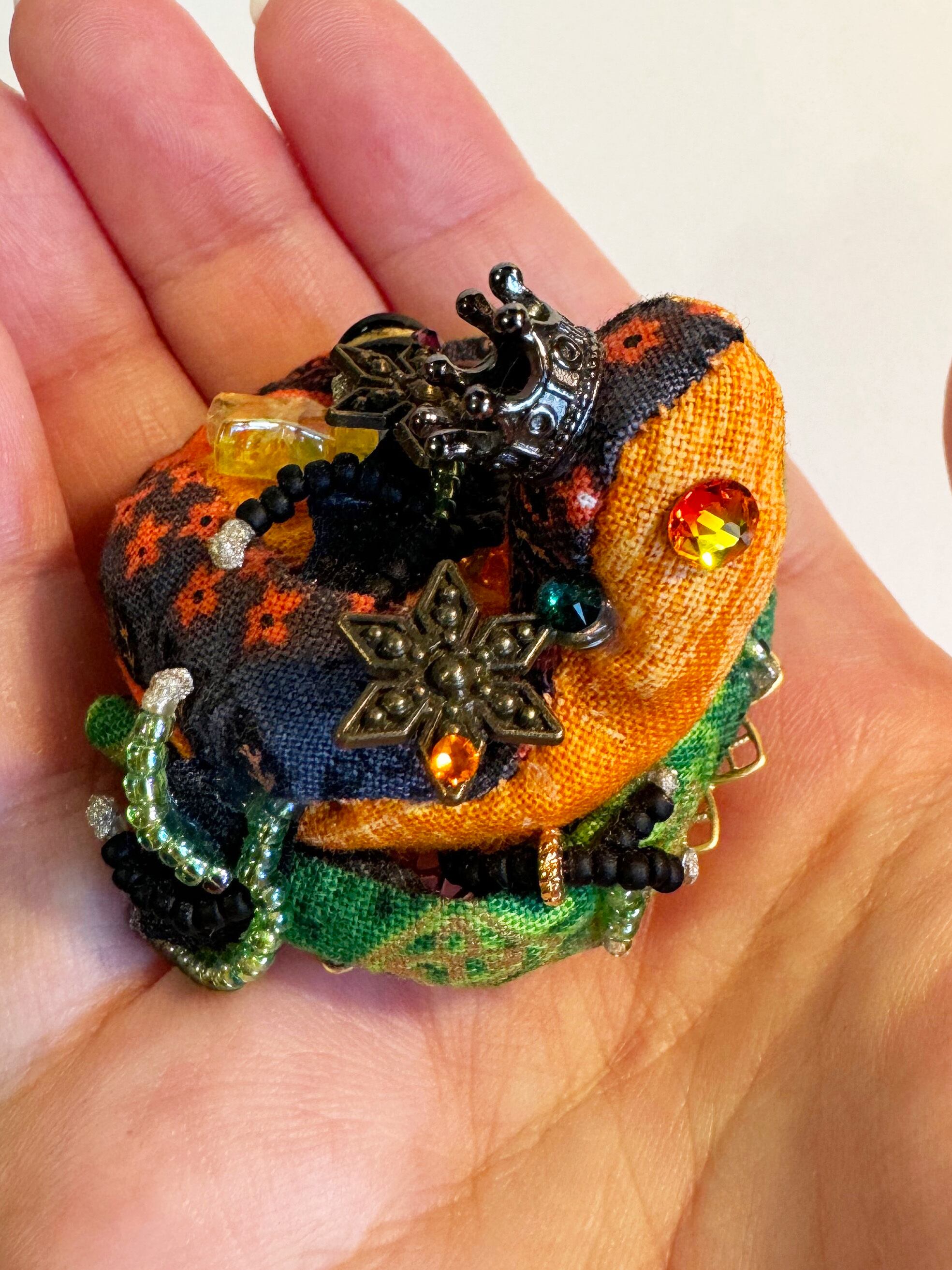 ハロウィンのちびっこ宝石竜ブローチ【かぼちゃの夜の王様】